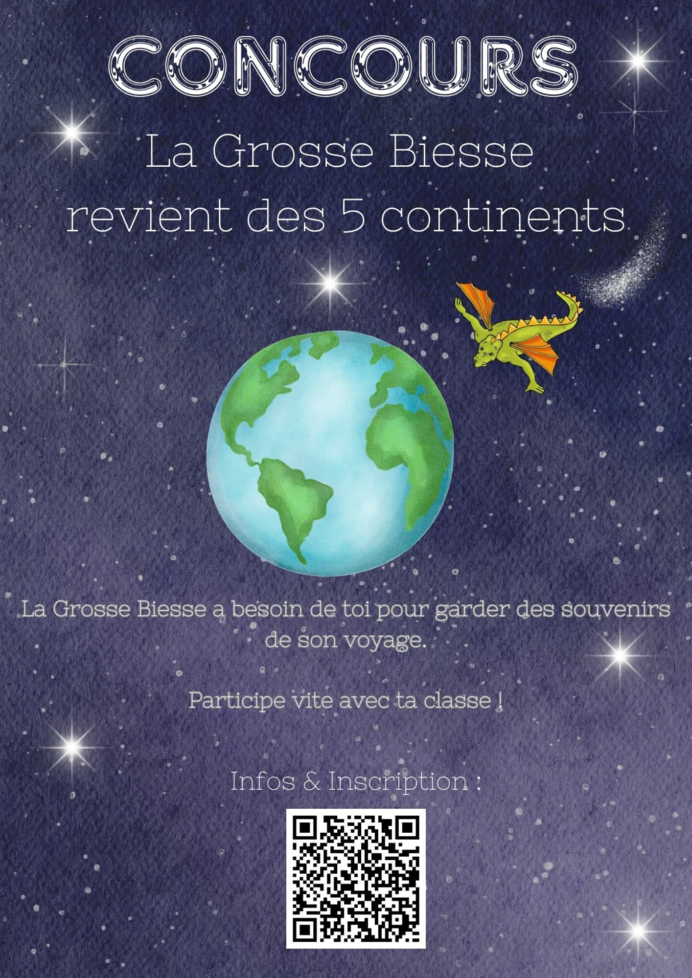 - Exposition du concours « La Grosse Biesse revient des 5 continents » : Viens découvrir l’exposition du concours « La Grosse Biesse revient des 5 continents » du 5 février au 15 février à la MCFA.